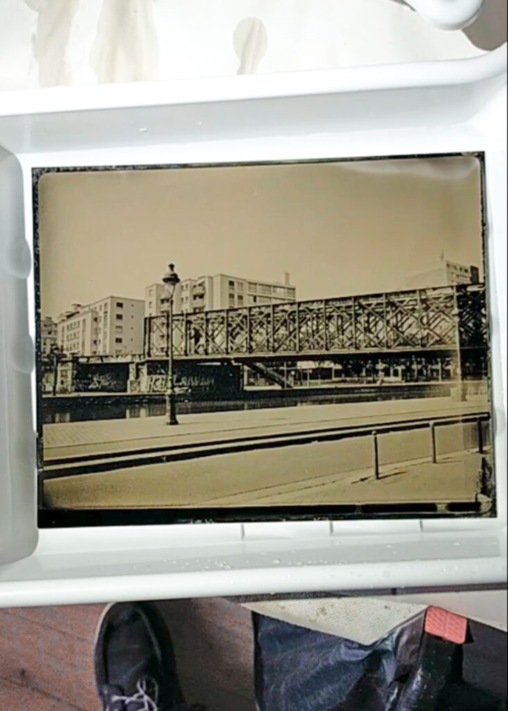- Etendage collodion, développement, fixage, lavage, rinçage…