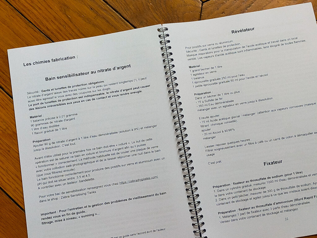 - Préparation des chimies (collodion, révélateur, fixateur)